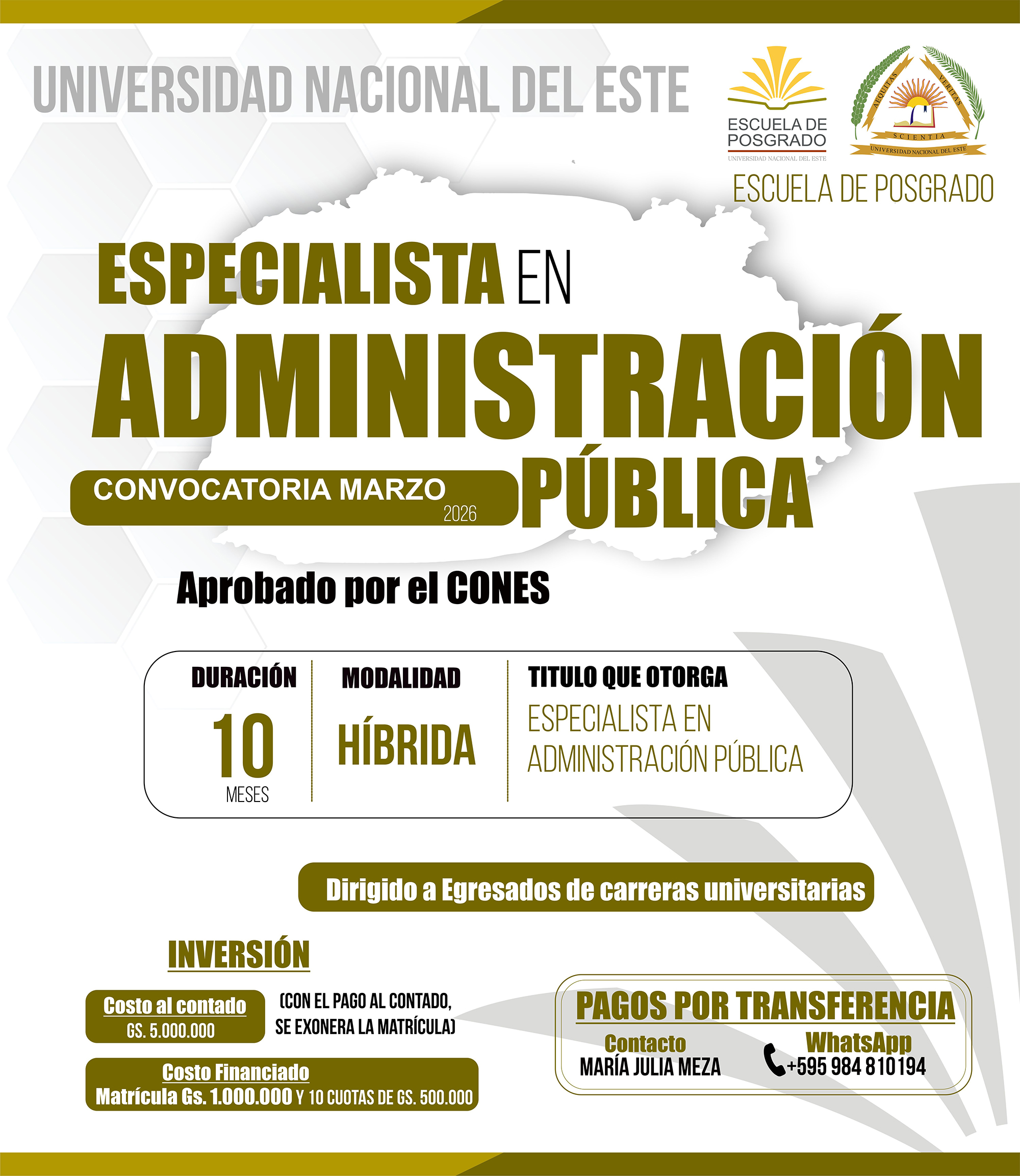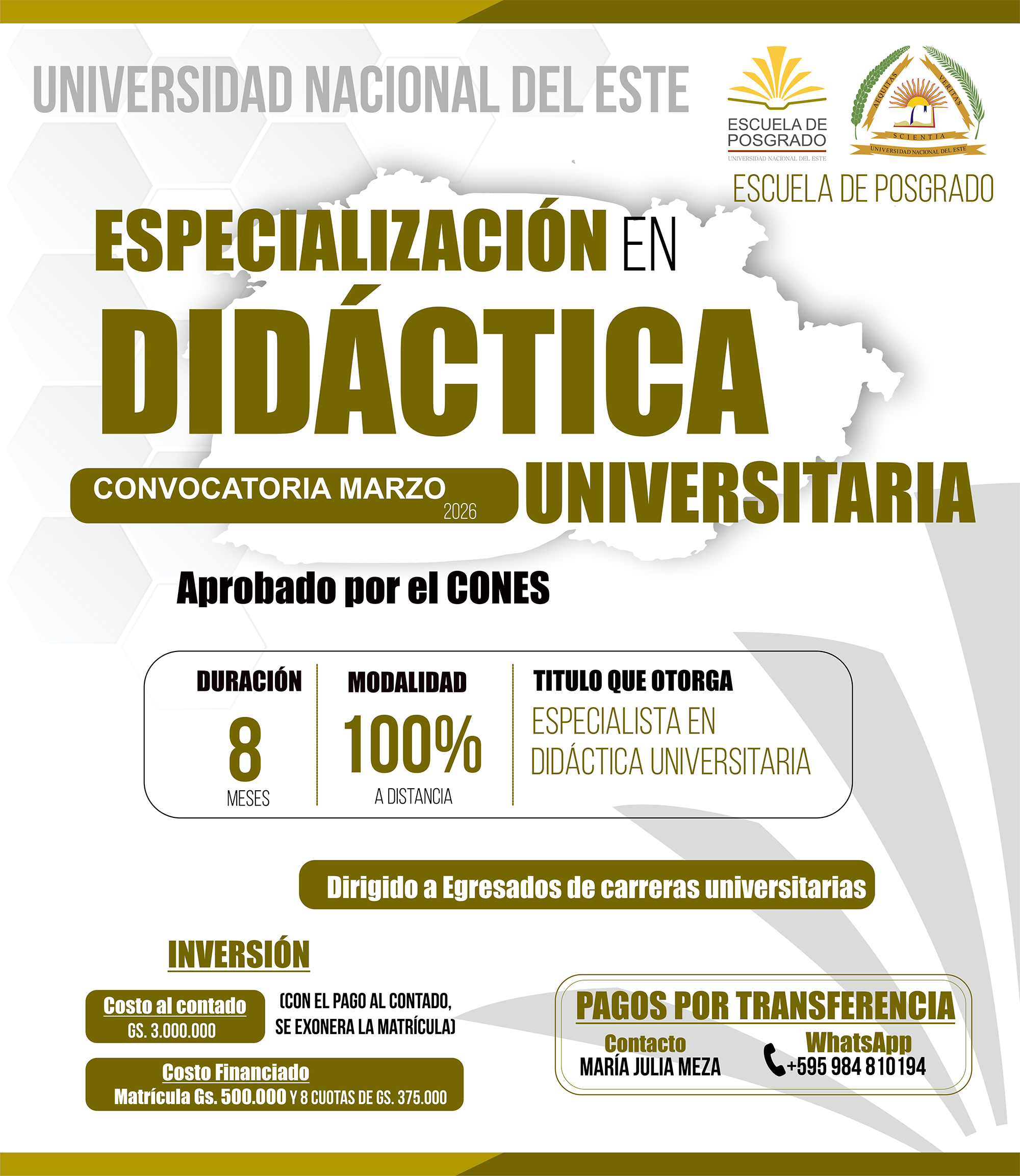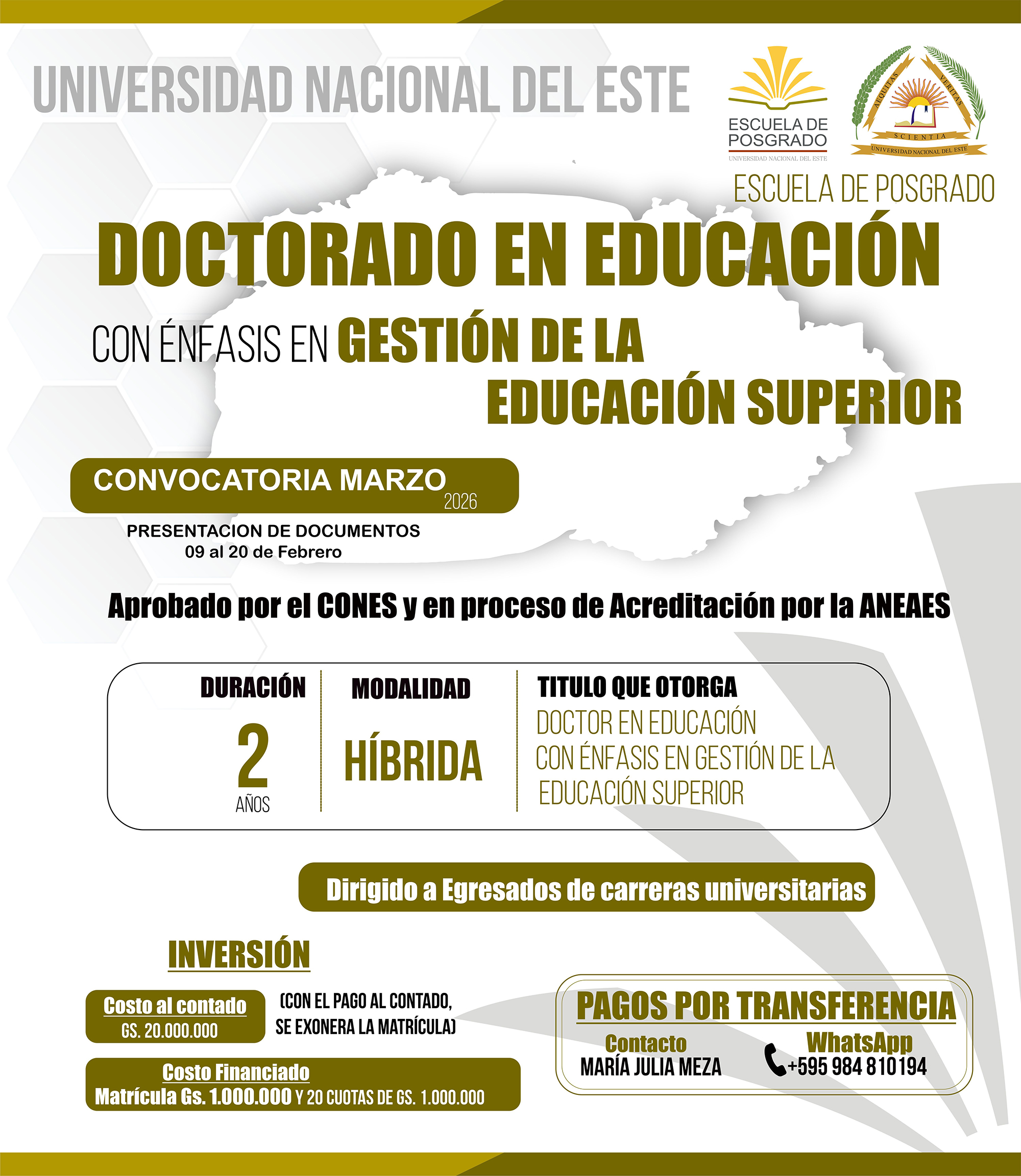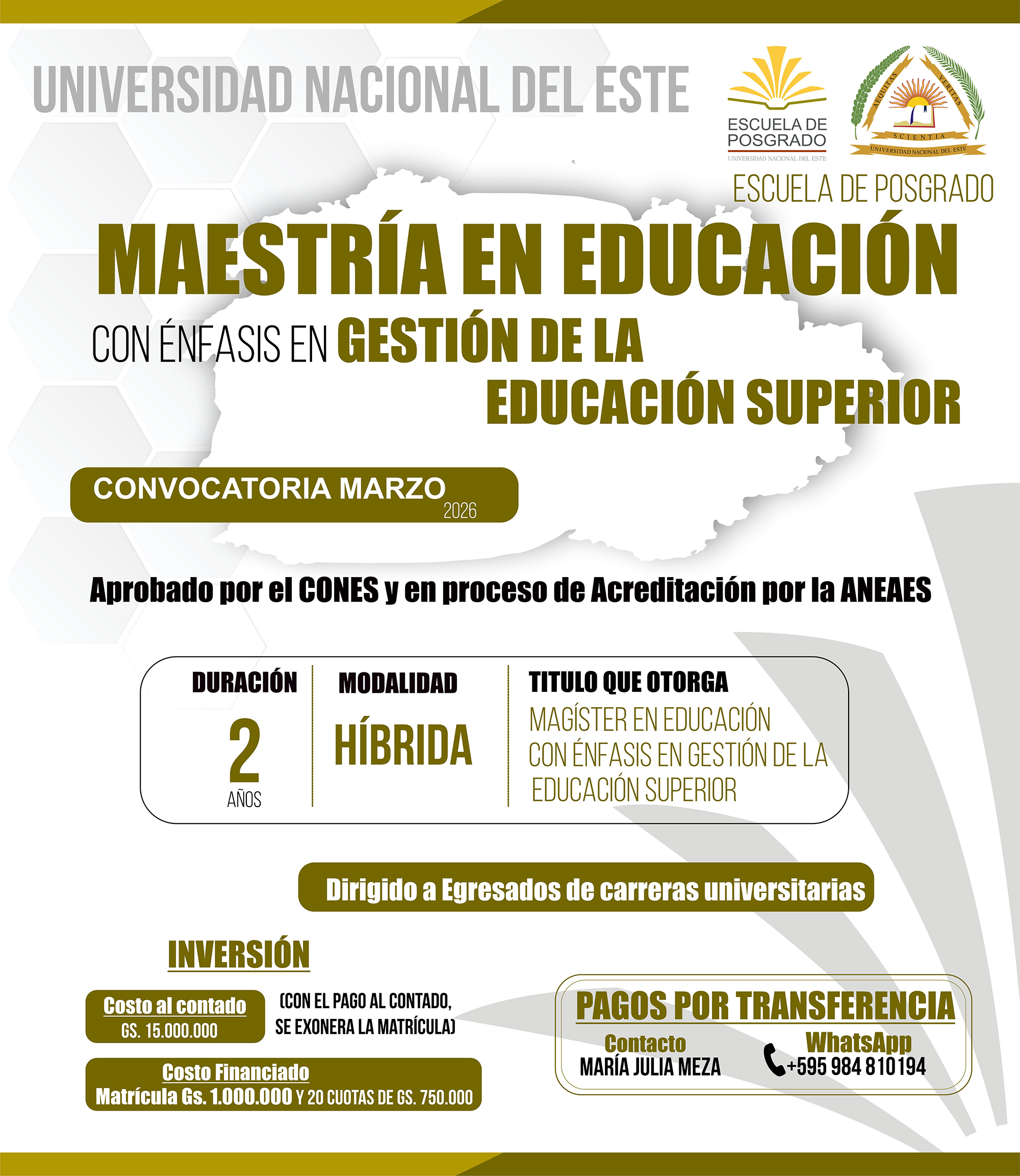 La Escuela de Posgrado UNE del Rectorado de la Universidad Nacional del Este (ESPO-UNE) marcó presencia en el "XIV Congreso Internacional de Gestión Universitaria", realizado en la ciudad de Florianópolis, Brasil. La ESPO-UNE presentó la ponencia titulada “La gestión...